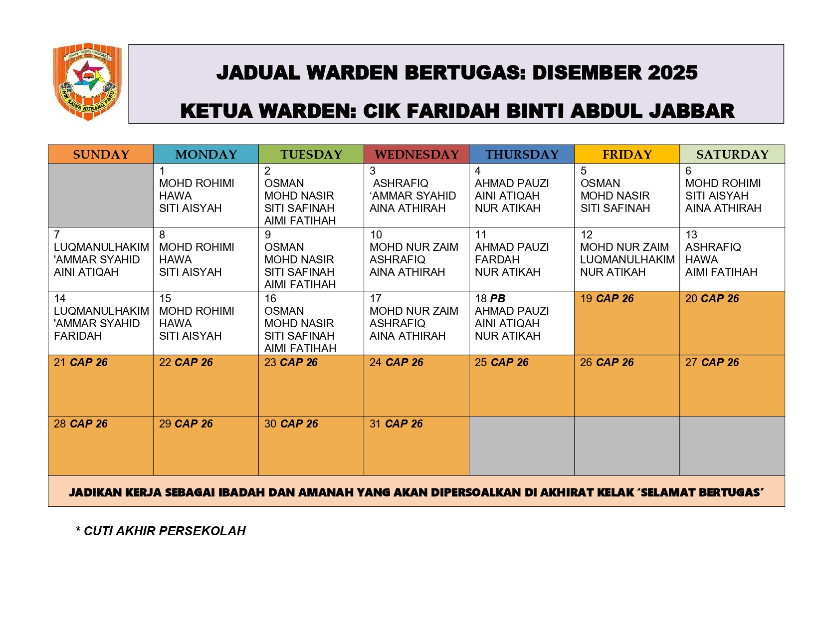 *** JADUAL WARDEN BERTUGAS 2025