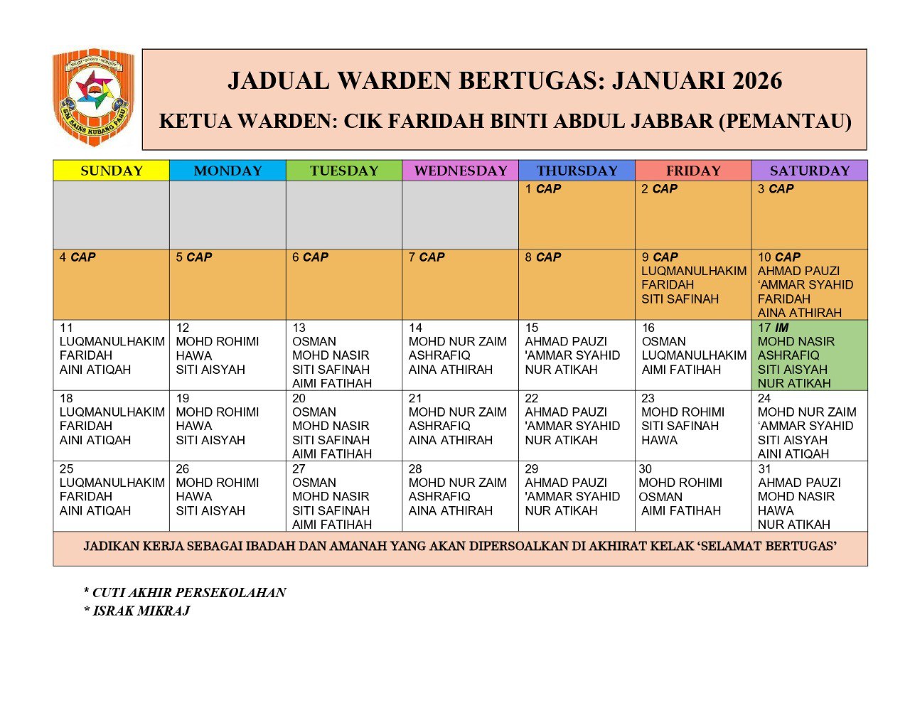 *** JADUAL WARDEN BERTUGAS 2026 ***