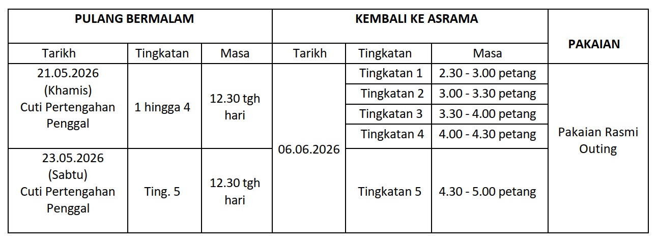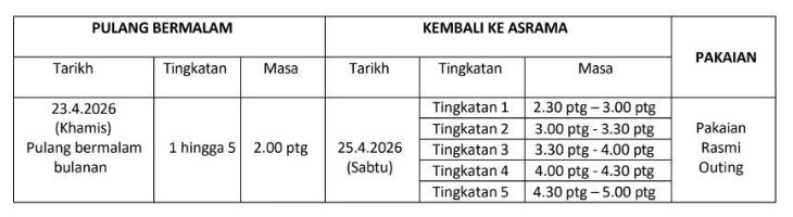 PEMAKLUMAN PULANG BERMALAM PILIHAN BULAN APRIL 2026.