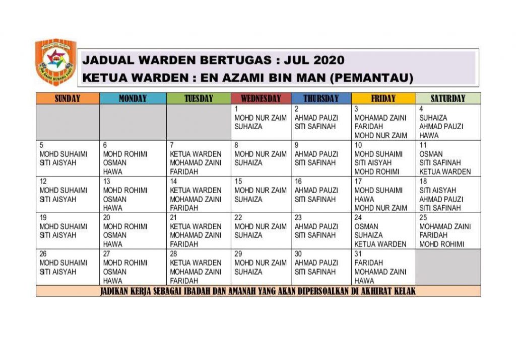 Jadual Warden Bertugas Julai 2020