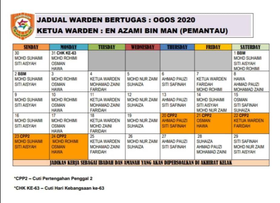 Jadual warden Bertugas Ogos 2020