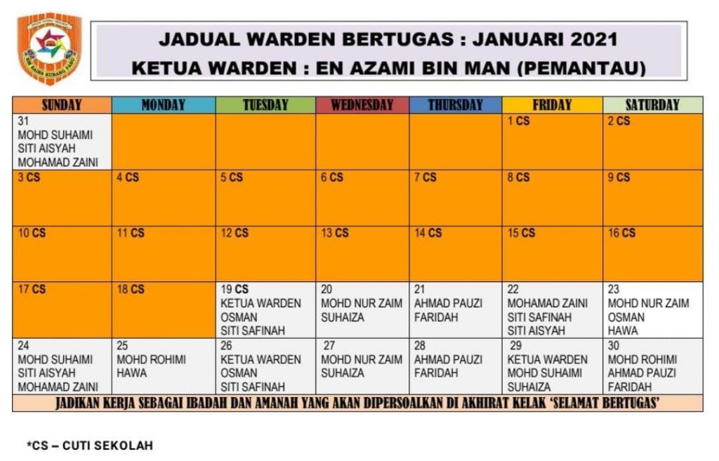 Jadual Warden Bertugas JANUARI 2021
