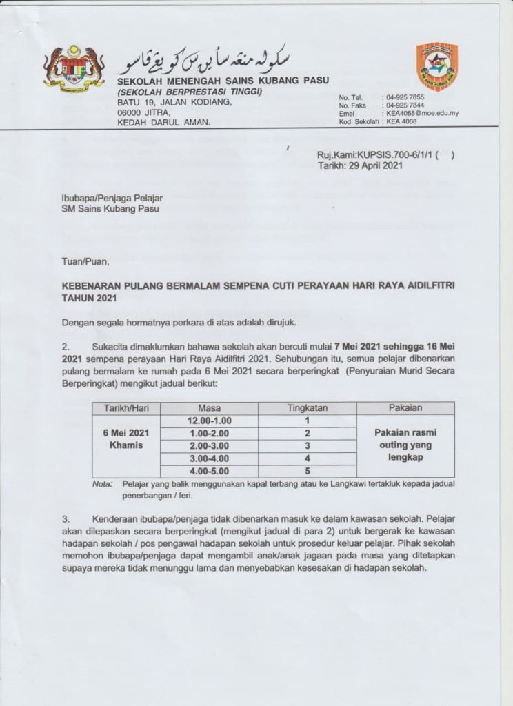 Jadual Pulang Bermalam, Outing & Lawatan Waris 2026