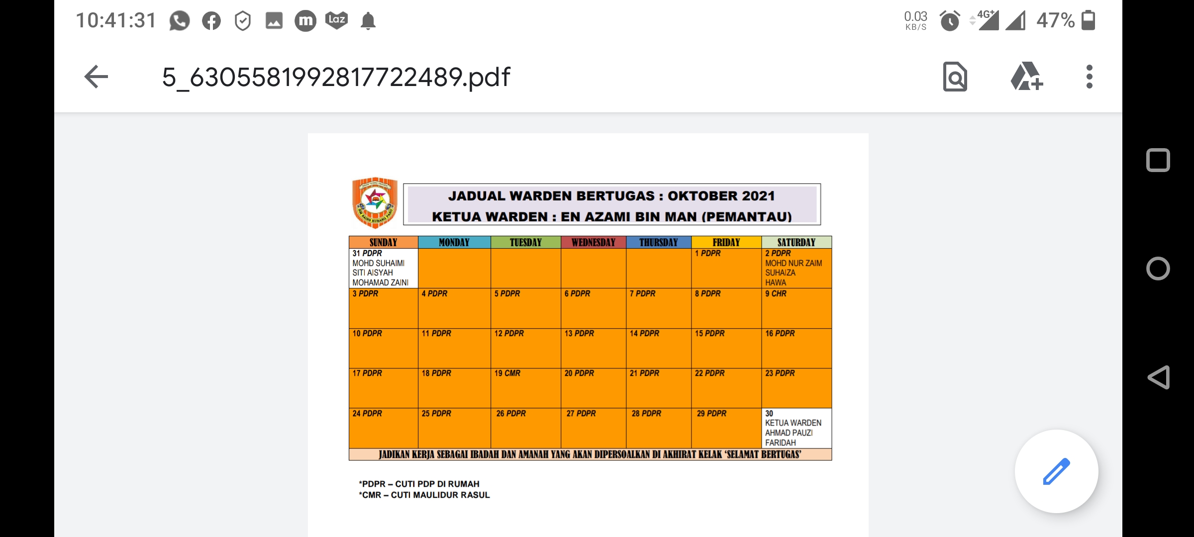Jadual Pulang Bermalam, Outing & Lawatan Waris 2026