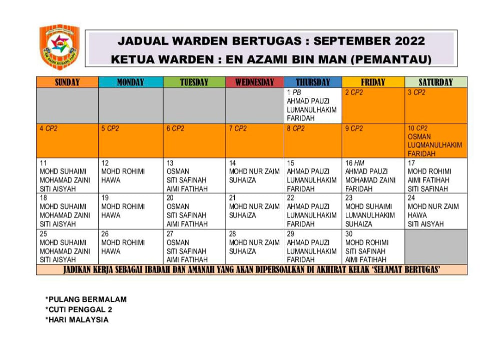 Jadual Pulang Bermalam, Outing & Lawatan Waris 2026