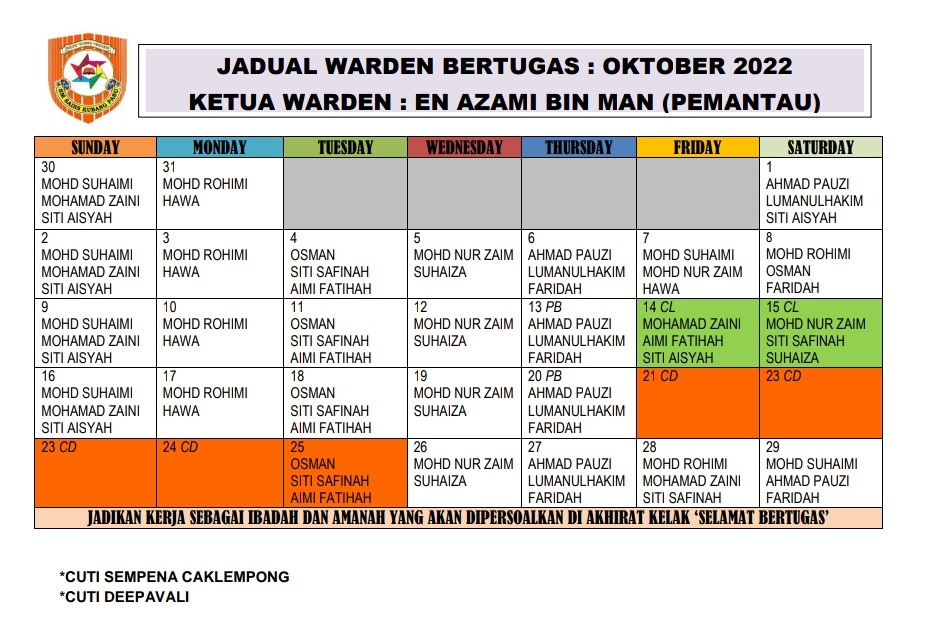 Jadual Pulang Bermalam, Outing & Lawatan Waris 2026