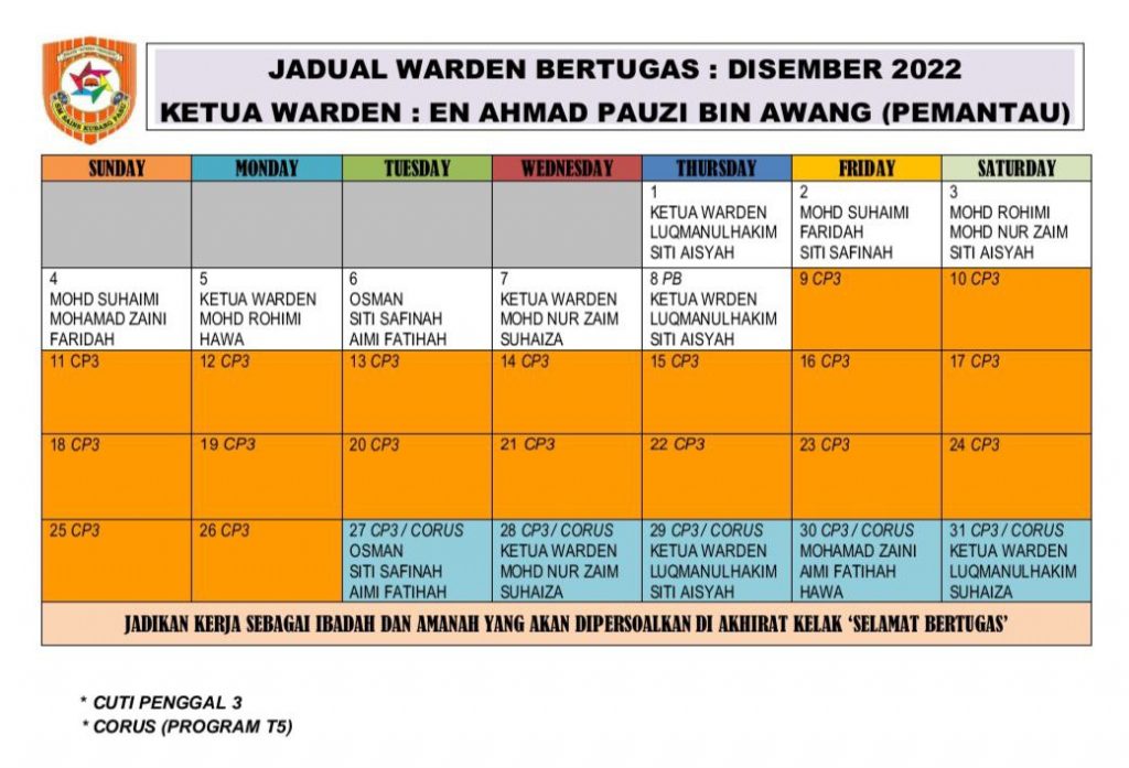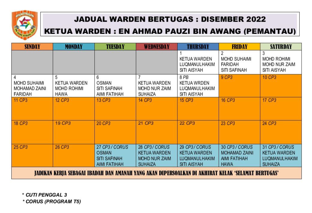 Jadual Pulang Bermalam, Outing & Lawatan Waris 2026