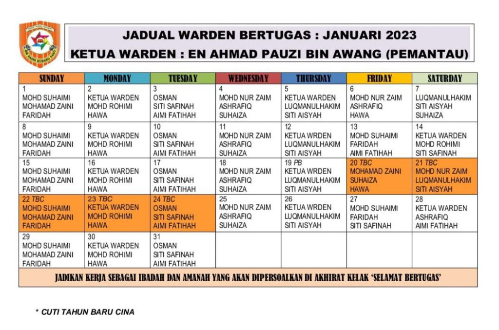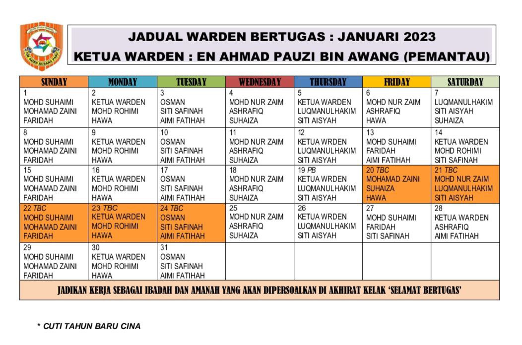 Jadual Pulang Bermalam, Outing & Lawatan Waris 2026