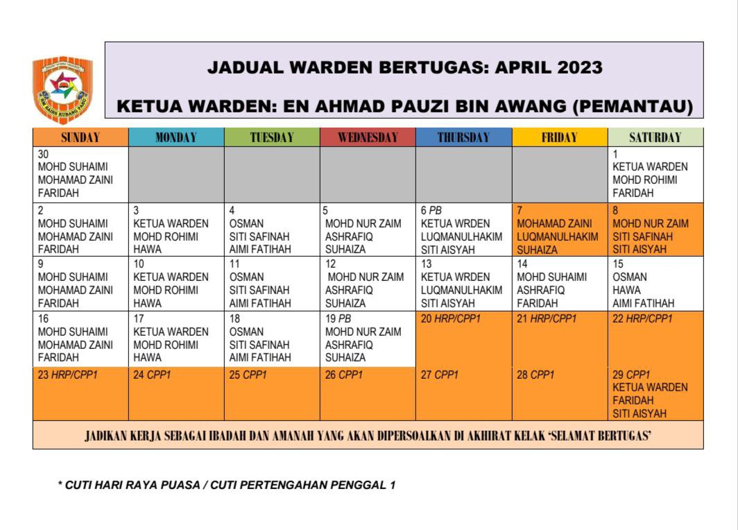 • Jadual Pulang Bermalam, Outing & Lawatan Waris 2026