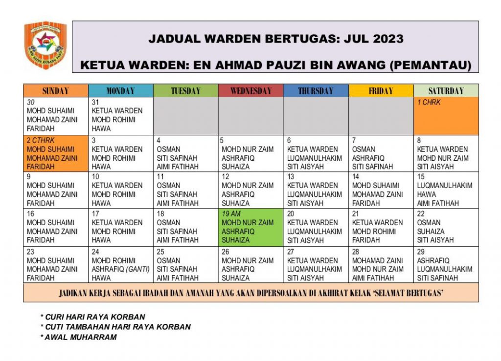 Jadual Pulang Bermalam, Outing & Lawatan Waris 2026